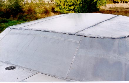 Oct 18 1998 8 hour: Put in two more cabin top frames. Weldout cabing top seams and most of cabin edge except sides which will be done after more framing is in. Weldout about 70 feet of knuckle seams, spent half the day on my knees... felt like Monica. Tacked up chunks for cockpit sole and start layout.