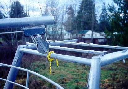 4.5 hour: Weldon and fab solar panel mounts. Bend fairleads from 3/8" rod and weld 4 onto boom to hold up mainsheet. Weldout locker supports in area of arch/davit. The arch/davit is supported by the cockpit locker where it meets the aft beam.
