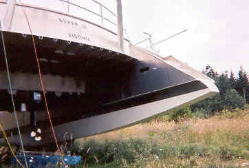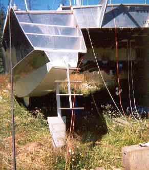 Kneeling the camel to put in the rudders. 800 lbs of water on the bow as calculated tips her forward.