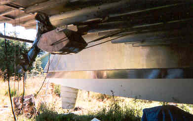 Rudders coverd in glass. Bottom section is sacrifical. Just as well it gets munched on launching !