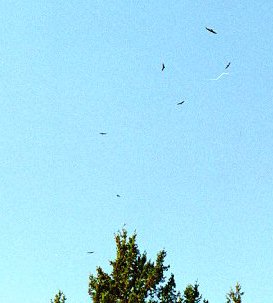 Turkey Vultures gathering overhead in the afternoon.