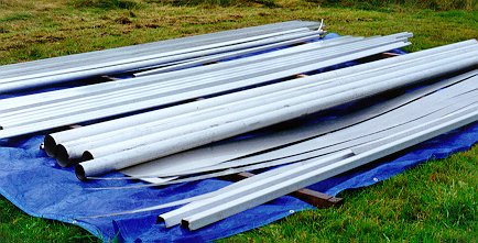 Sept 27 3.5 hour: Move shapes to winter storage area. Two 6" tubes are for bow tube and main boom. 5" tube for jib boom, and a bunch of sch 40 and 80 small pipe for lifelines, some tbar for the deck framing plus some hull stringer section for under the bridge and some plate off cuts for whatever.