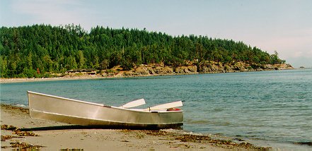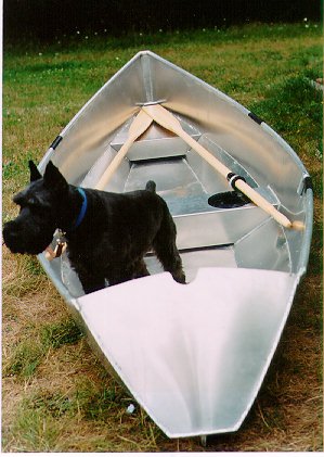 Its a modern double chine dory in 3/32" aluminium. 11'10" LOA 100lbs built weight.