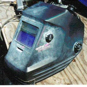 My very nice ( what a great idea ) Optrel automatic helmet. Havent had to learn the welders nod or develop new neck muscles. Well worth the $400. Room in there for a little respirator and a great field of view with adjustable density. Added the leather beard to handle flash on my neck in some postitions.