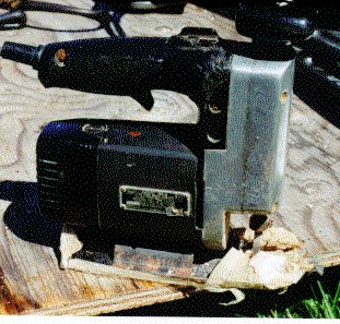 My dads old beat 1970s two speed jig saw. Trigger switch died so wired dual speed for single speed on/off. Plastic handle cracked so welded it back together (sorta). Dont expect this will last the job, so will plant it under the big tree when it dies. May keep the top knob as a drawer pull on the boat.