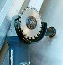 The meat axe. Got this from Eastside Saw in Bellevue Washington tel 454-7627. US$63. This does a really nice job of backchiping welds ( thought a little wide for 1/8" butts ) and is also great for smoothing down beads. Gotta be real carefull.