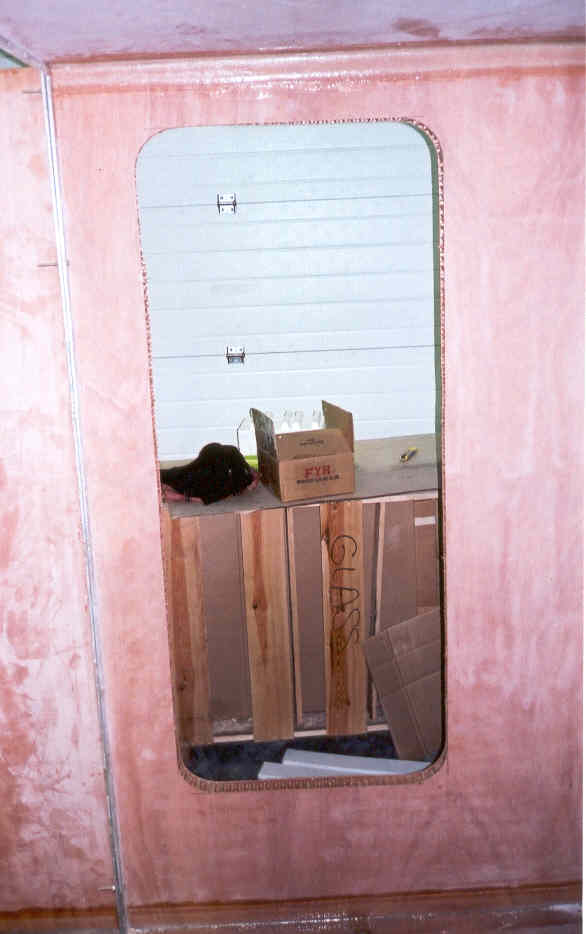 Window in door and a bit of the solid stock on the edge of the door.