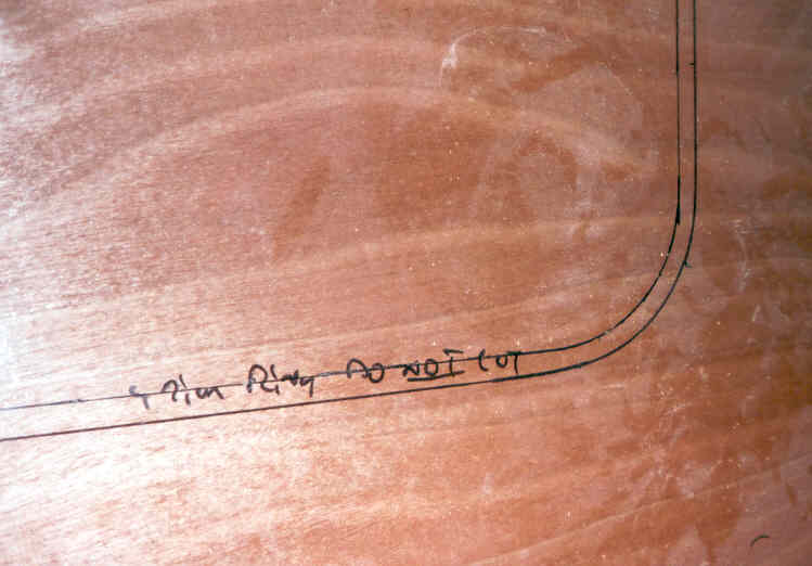 Cutout lines for clamp on windows. Outer line has reminder not to cut there.