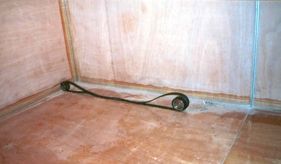 The stb floor up on end showing the wheels.