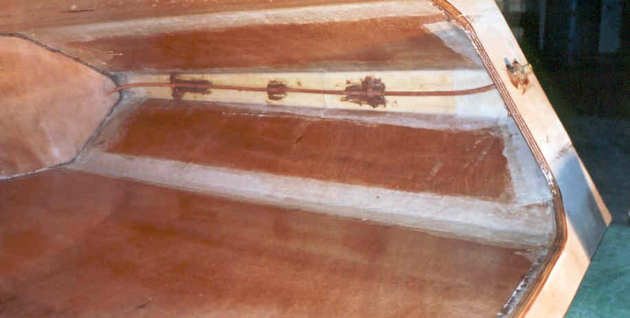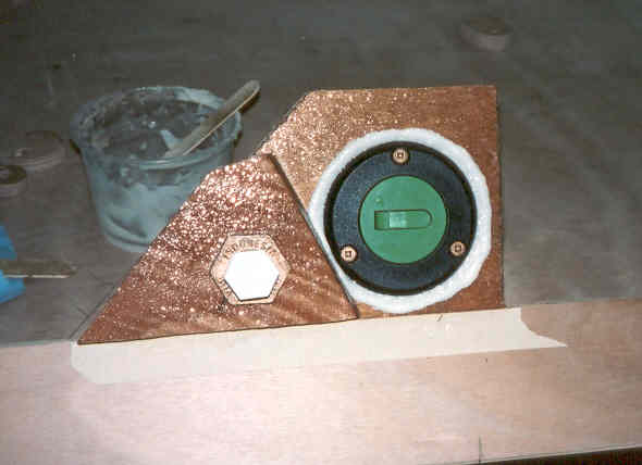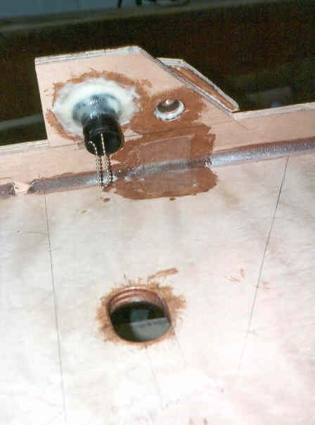 Bonding the underside of the fuel fill. Details of vent and interior feed to tank.