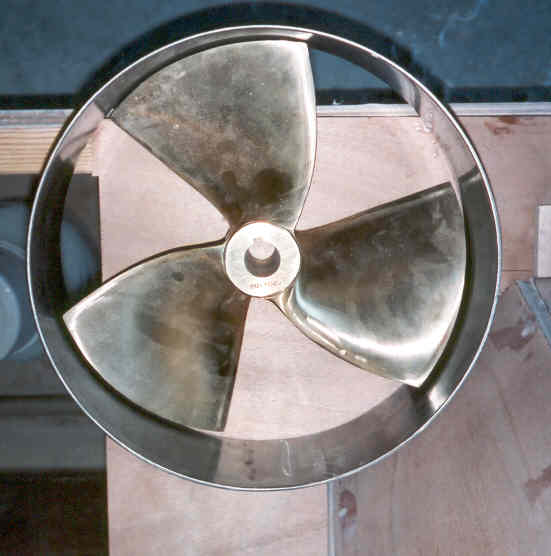 Prop sitting inside shroud. 316 SS about 1/8" bigger all around.