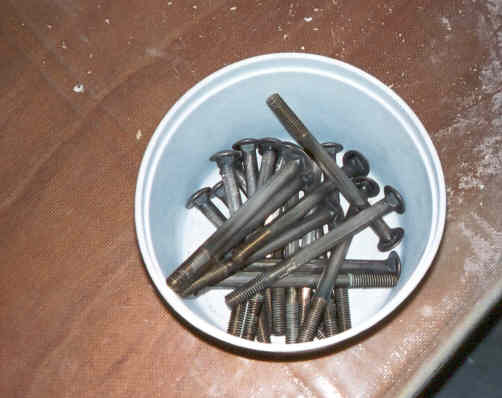 Bucket of silicon bronze bolts cleaned and roughed up for bonding in.