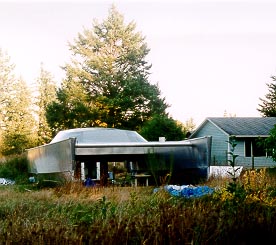 Oct 19 1998 2 hour: Cut out cockpit and put on bracing and get half way in place.