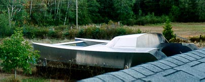 Oct 18 1998 8 hour: Put in two more cabin top frames. Weldout cabing top seams and most of cabin edge except sides which will be done after more framing is in. Weldout about 70 feet of knuckle seams, spent half the day on my knees... felt like Monica. Tacked up chunks for cockpit sole and start layout.
