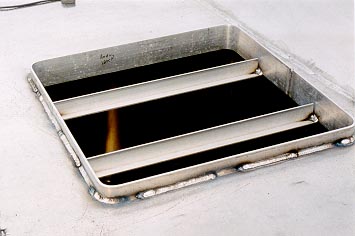 Oct 11 1998 7 hour: Weldout cabin side seams. Weld coaming for hatch on mid deck. Cut and fit and weldout toerail at front of mid beam. There is a fair bit of distortion in the deck in this area probably to to shrinkage of caused by the cabin. Will put in some extra stiffeners in the area and let epoxy filler hide the rest of the sins as this area will be painted with non-skid. Thicker plate next time!