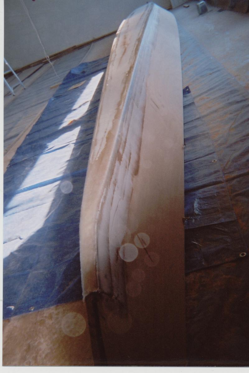 Bottom joint done and faired while glass still tacky to save sanding later. Will be overlaid with 6oz cloth.