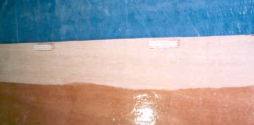 Sheer log glued on and mostly coated with epoxy. Bottom part not coated as will be done with chine joint.