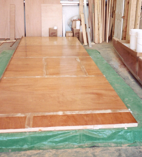 Aft cabin wall held in place for glassing bottom joint.
