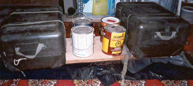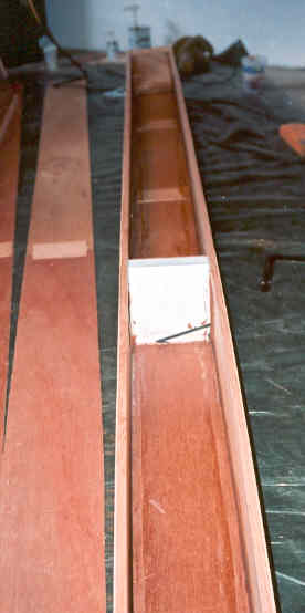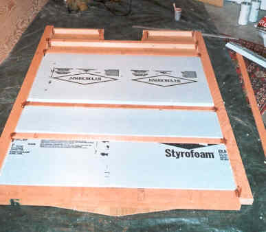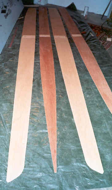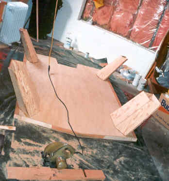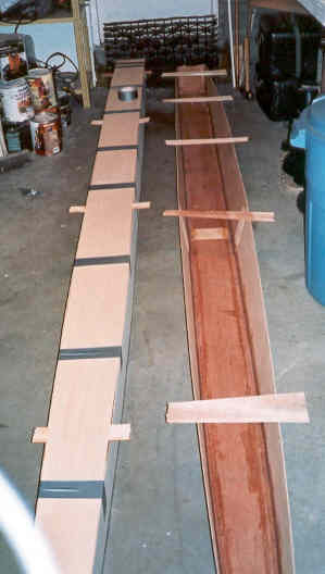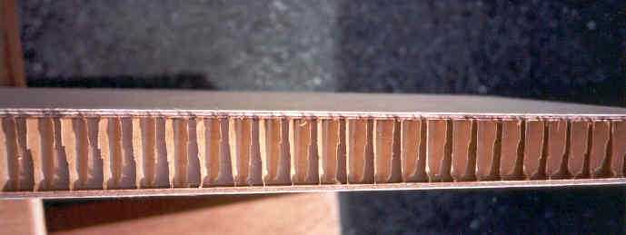 Various weights placed on plywood honeycomb panel to get a good bond.