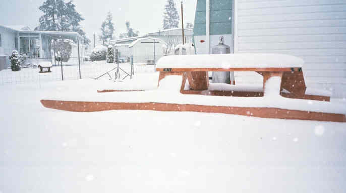 The trials of building outside. Scaled to full size that is about 16" of snow.
