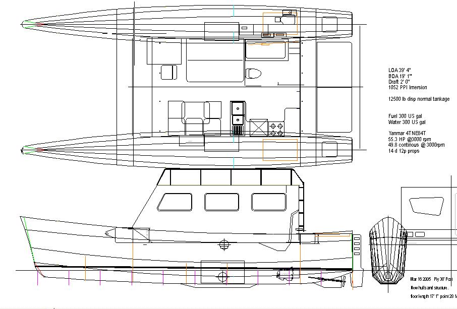 While I never completed the sound insulation noise was always a problem and would have continued to be one. What type designer mounts a diesel engine in the middle of the cabin sole on a lightweight structure without full floating vibrations mounts. ( designer: I could not use full floating mounts due to the need to maintain belt tension. The engine would not fit in the hulls. )